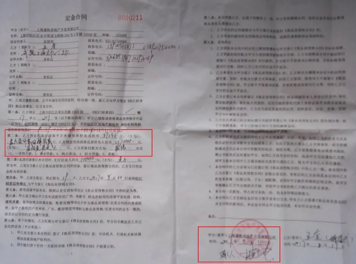 虽然定金合同已被开发商“调包”,但侍女士仍拍下了照片,上面清晰可见: