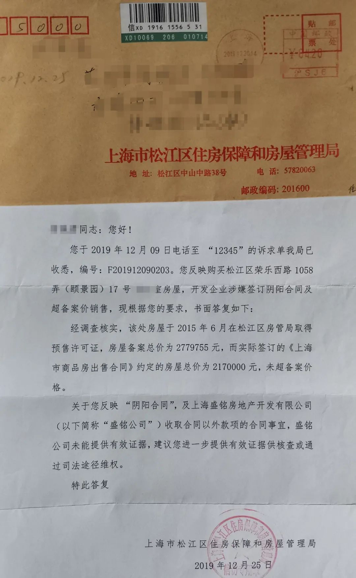 松江区房管局的书面回复