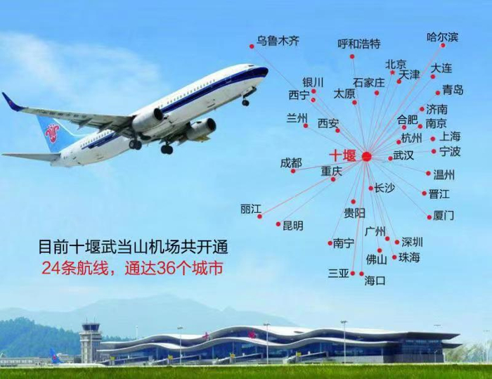 ➤ 五年来,十堰武当山机场开通24条航线,通达北上广深等36个城市,37个航点;