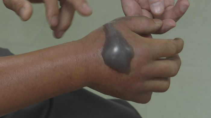 在广东省毒蛇伤救治中心,记者见到了被毒蛇咬伤的邓先生。他说上周五下午三点,他在增城新塘一工厂上班时,在草地里发现一条眼镜蛇。当时其他工友都不敢上前,因为他之前有抓蛇的经历,于是就上前抓蛇,蛇是抓住了,然而就在将蛇扔进布袋时,蛇咬了他一口。