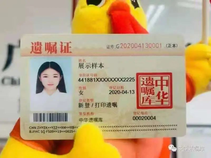 中华遗嘱库的遗嘱证样本。受访者供图