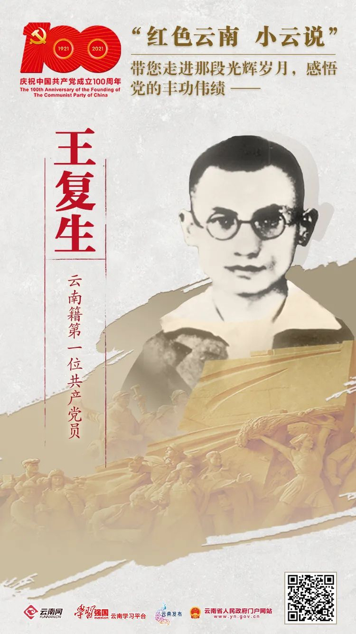 王复生,原名王濡廷,生于云南省祥云县王家庄一个半自耕农家庭。1918年,考入北京大学,受五四运动和新文化思想的熏陶选择了马克思主义。