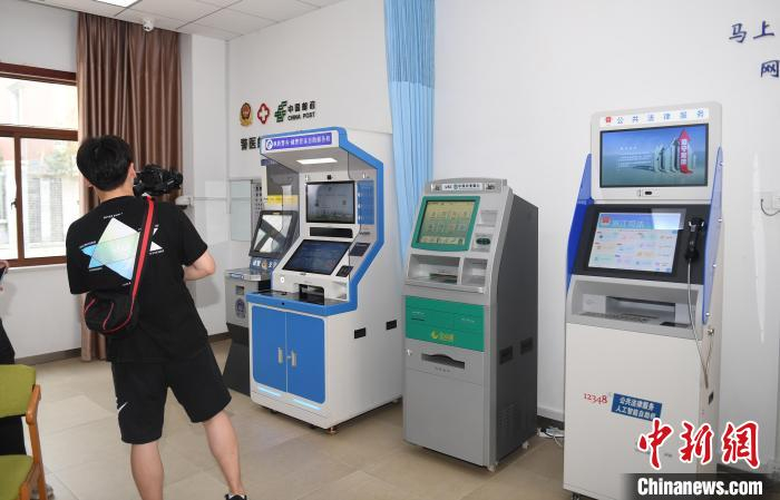 图为:枫源村工作人员在展示警务自助服务机。 王刚 摄