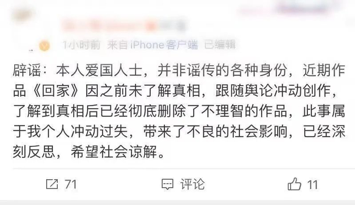 事后,该画手清空了自己的微博,并且辟谣。