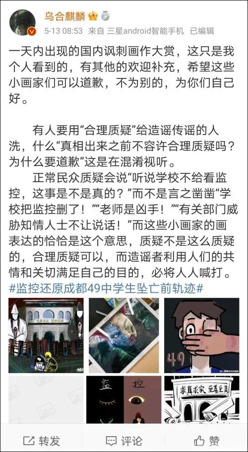 原标题:《炮制成都49中“画作”?还挂在网上卖!@乌合麒麟 希望他们道歉......》