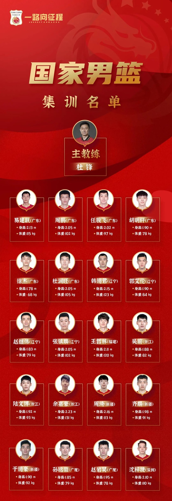 本期集训名单中,去年总决赛中跟腱断裂的易建联伤愈复出,但在今年CBA季后赛表现优异的广东队后卫赵睿却意外落选。此外,浙江广厦队的中锋胡金秋在13日已入选三人篮球国家队,所以也不在这份名单之中。