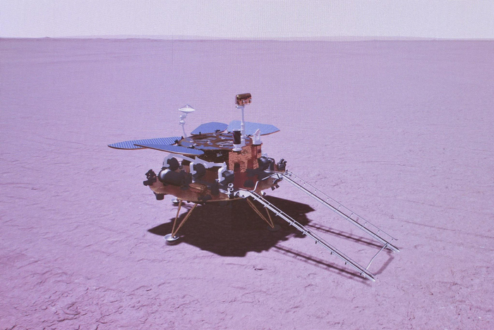 相较之前的探月任务有所不同,火星表面存在以二氧化碳为主要成分的稀薄大气,会在发动机下降过程中带来摩擦生热等问题。因此探测器着陆方式也从之前月球真空环境下的变推力发动机反推着陆,改变为降落伞和变推力发动机共同作用。