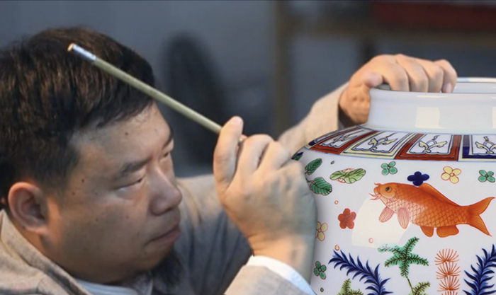 不过幸运的是,这只鱼藻纹珍藏瓷,竟被故宫特邀官窑粉彩瓷传承人——阳士琦大师复刻成功了!