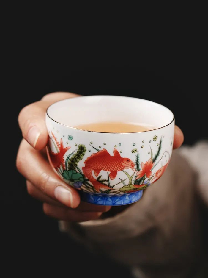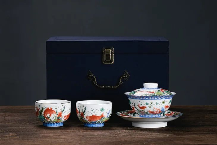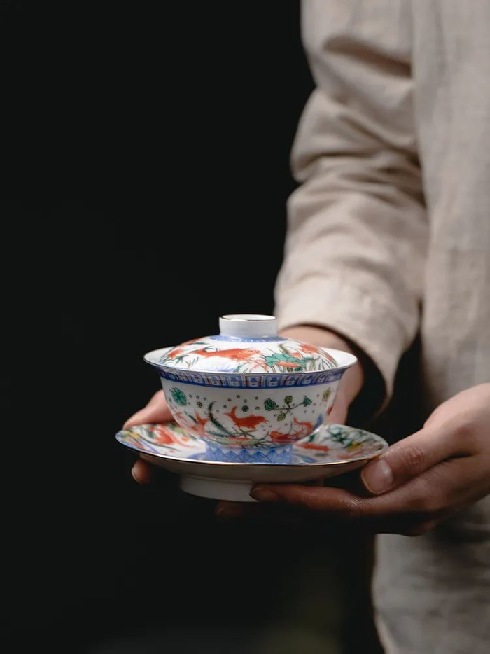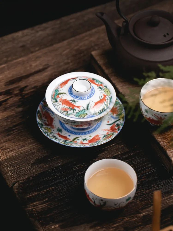 它们也同样以这鱼藻纹盖罐为灵感来源,精美绝伦,执一盏品茗、藏玩、或赠予人,都是不可多得的美物。