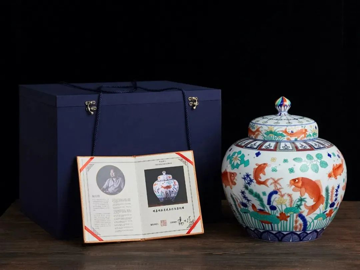 这次复刻大明嘉靖五彩鱼藻纹大罐为阳士琦大师亲制,其余作品则由大师监制,均有收藏证书1份,得阳士琦大师签名,收藏价值更高。