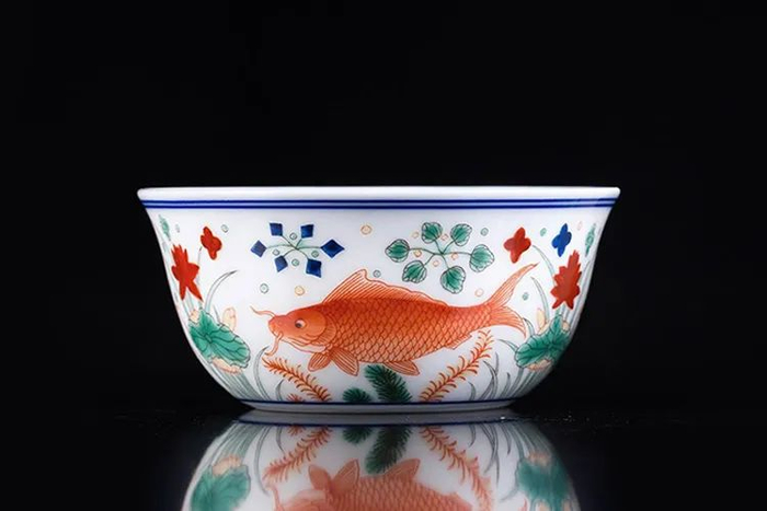 但在五百年前,这需经过三次煅烧、充满视觉张力的鱼藻纹五彩瓷,从一出窑炉始,便是华贵和绚丽的存在。