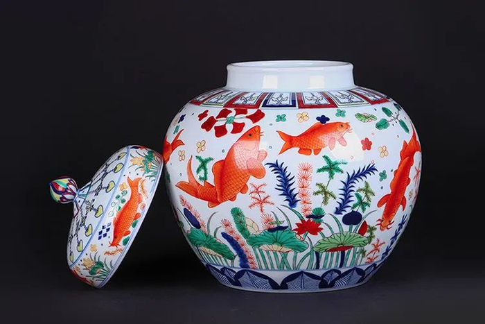 这个青花五彩鱼藻纹盖罐,便汇聚了多般灵气,美得让所有人震撼。
