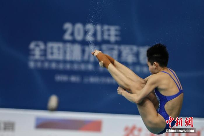 2021年全国跳水冠军赛暨奥运会选拔赛在上海进行女子三米板决赛争夺。 张亨伟 摄