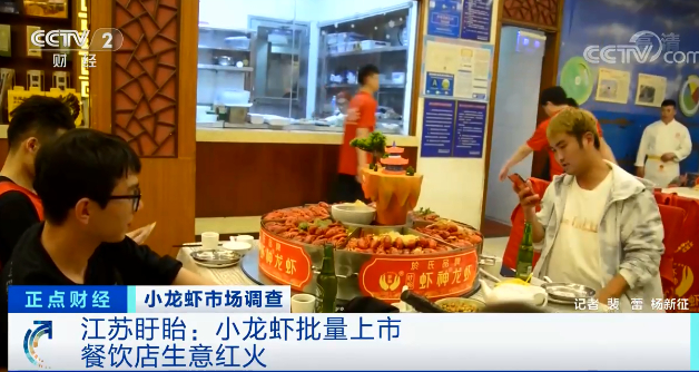 江苏盱眙某小龙虾餐饮店总经理 於新凯:今年我觉得龙虾季,越来越火了,正常的销量每天达到1000多斤、2000斤,周六正常也能烧个2000多斤、3000斤。