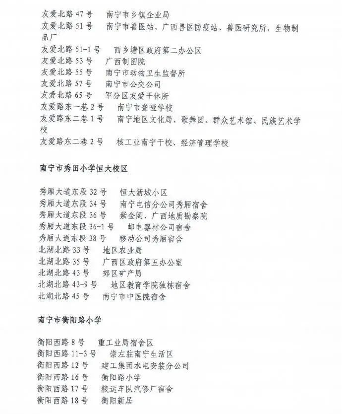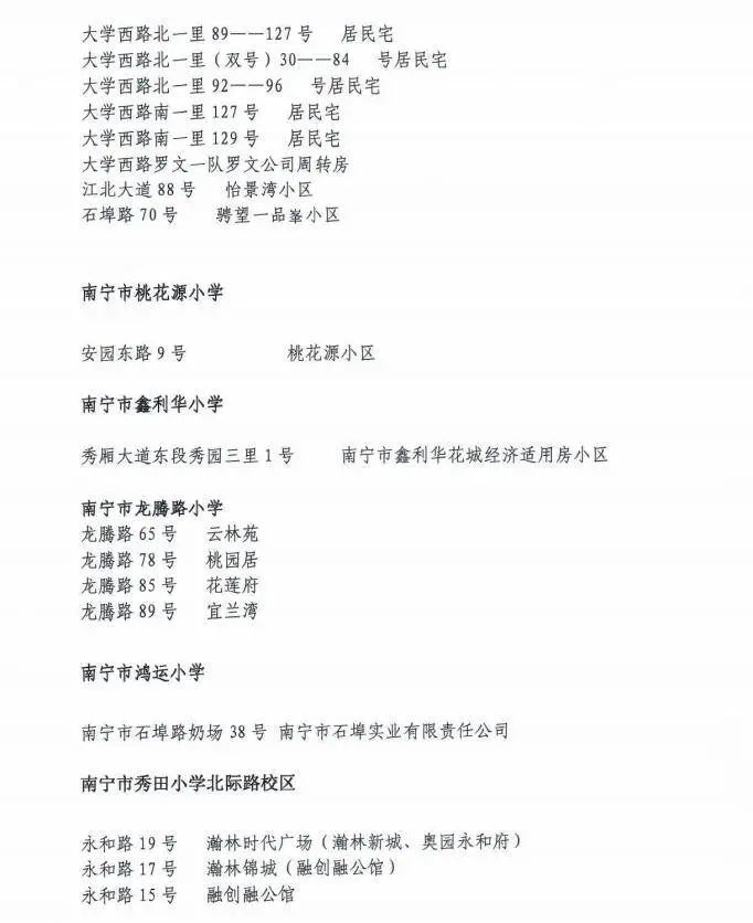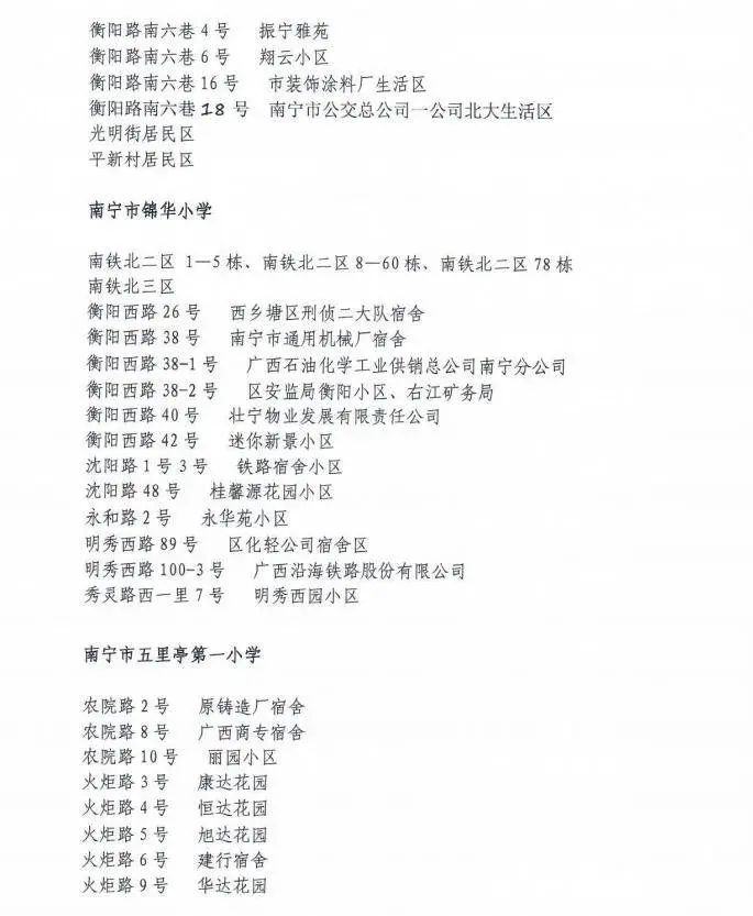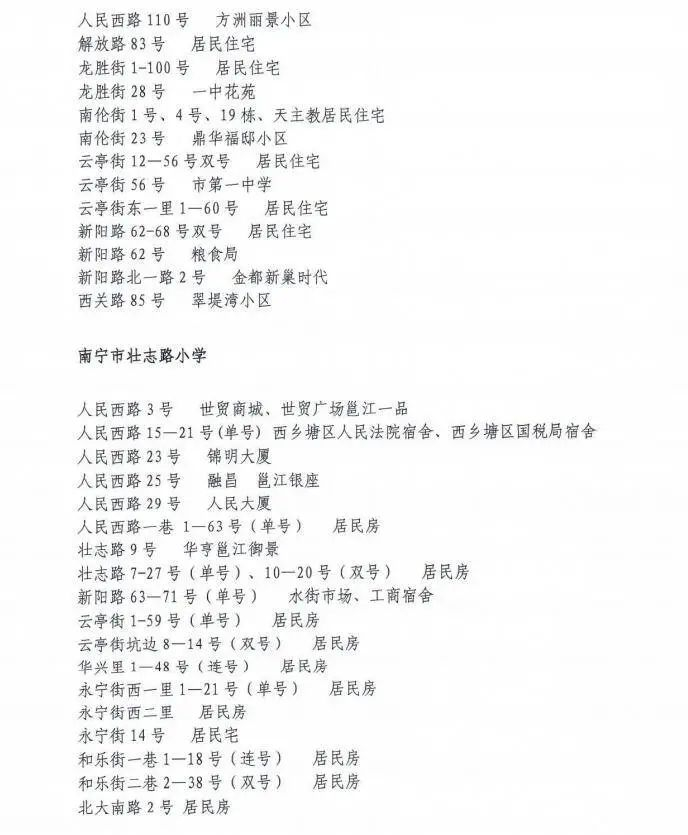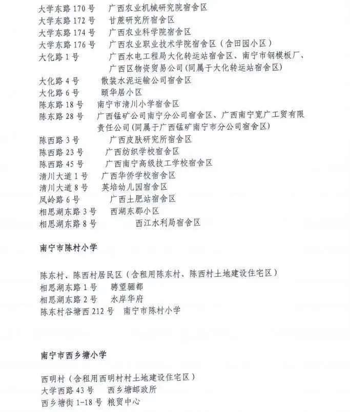附:2020年南宁西乡塘区市区公办小学招生服务地段