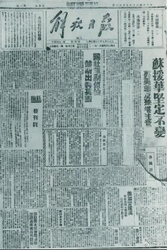 图为1941年5月16日在延安创刊的中共中央机关报《解放日报》。