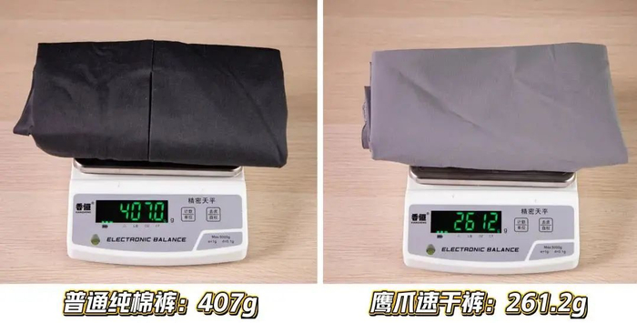 当时还特意找出了一条棉质的裤子对比了下,同样是L码,鹰爪这条足足轻了145.8克,穿上身之后也是能非常明显地感受到它更加轻快。
