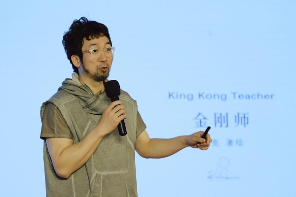 中国原创绘本大师熊亮先生则以自己绘画创作的儿童绘本《金刚师》举例,通过讲述绘本与台下的家长和小朋友们互动。带领家长感受亲子共读的方式和角度,详尽的解释了如何利用妙趣横生的故事及绘本里中国水墨线条样式,帮助孩子挖掘绘本内部的细节,通过绘本了解中国的文化,了解自然界的知识,了解万物相克,感悟人生的道理,深入浅出的分享了“儿童才是亲子阅读最有发言权的人”这一主题。