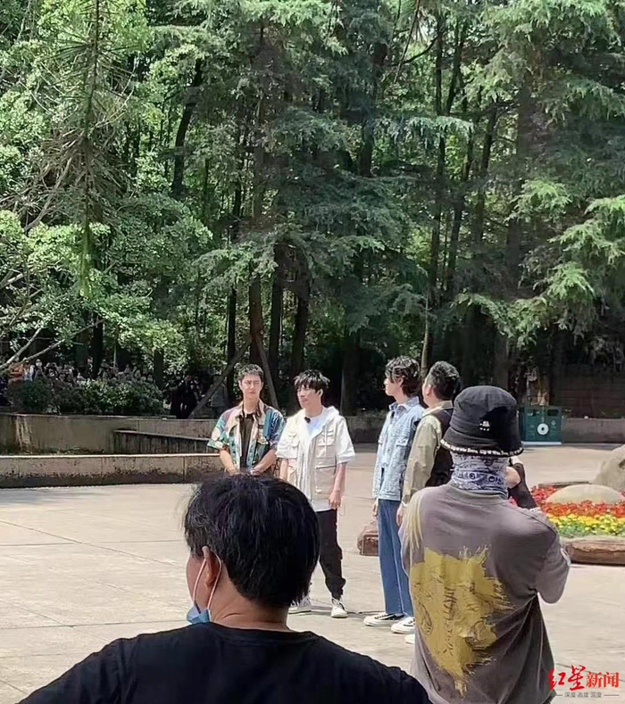 此次是外景拍摄,很多游客都近距离看到了王一博,不少粉丝直呼“好帅”。