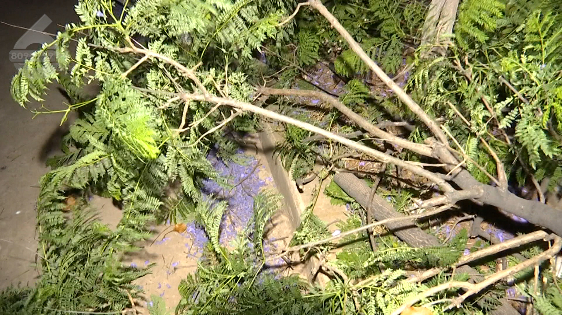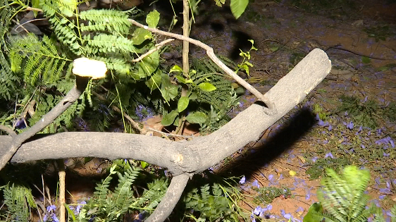 记者傍晚到达现场时,地上堆满了蓝花楹的树枝。