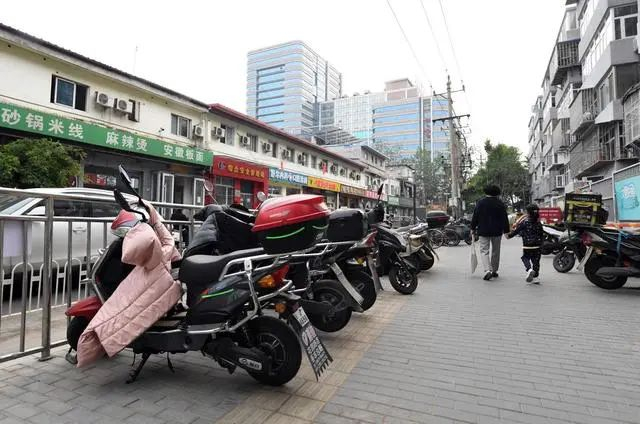 ↑在广西钦州市新兴街,电动车停放在盲道上。