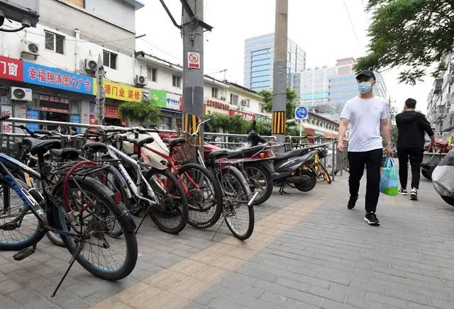 ↑在北京市一处行人步道上,自行车挡住了盲人步道。