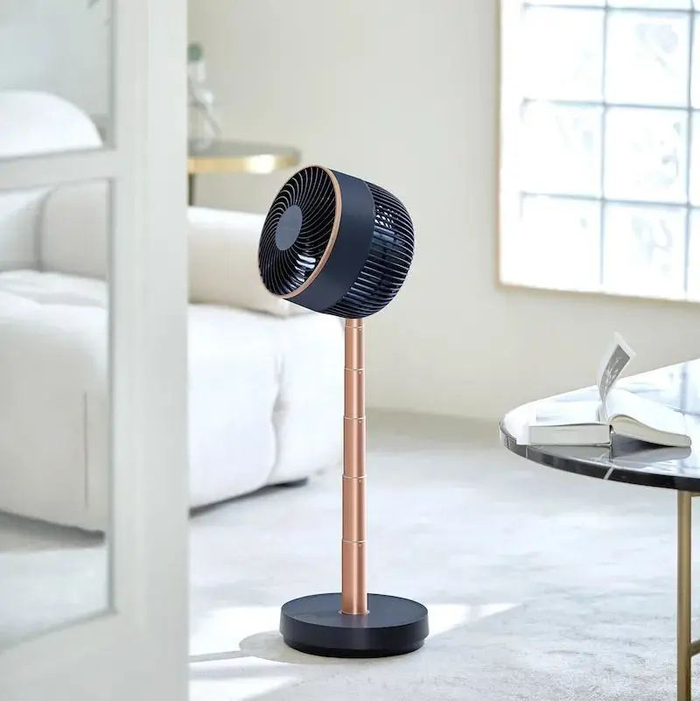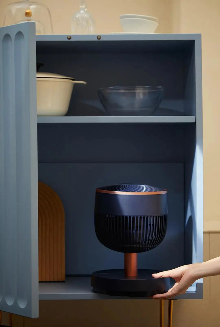 艾美特无线折叠循环扇风力强劲,可以吹动8米远的空气进行循环;但却十分小巧,能够自由折叠收纳,放在桌面、地面都可以。