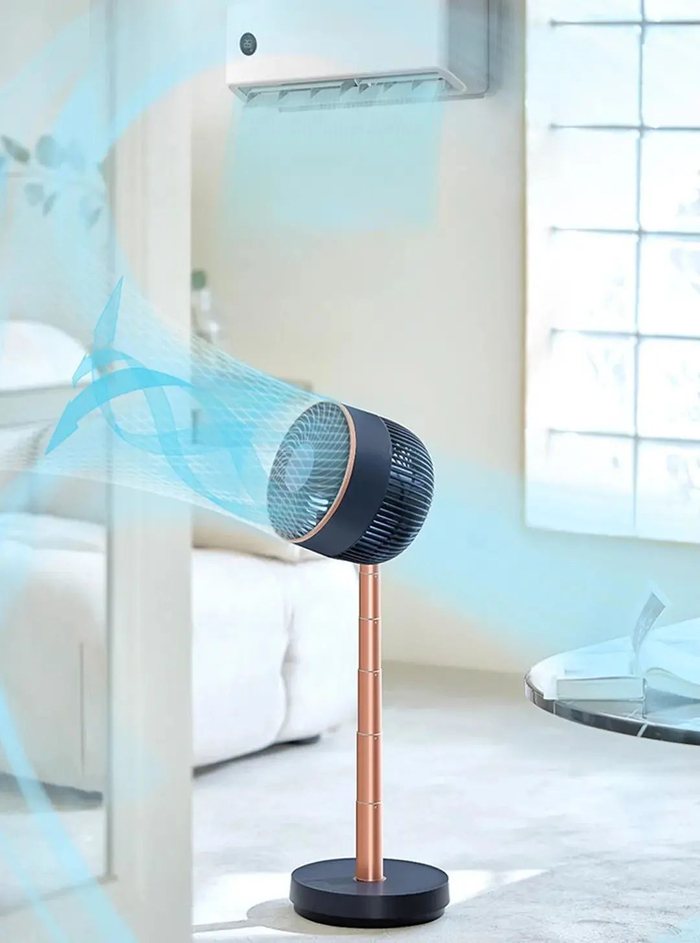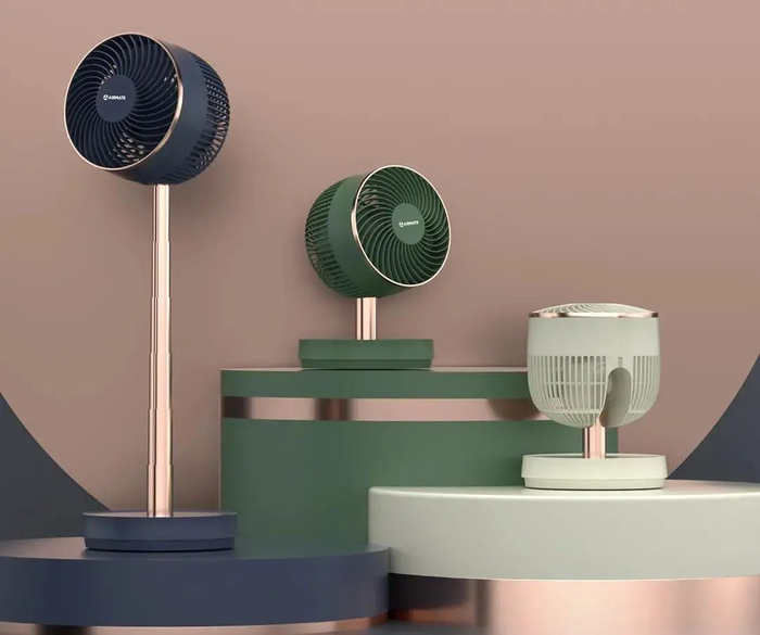艾美特无线折叠循环扇是一款小巧的台立两用折叠扇,可以根据需要自行调节高度。