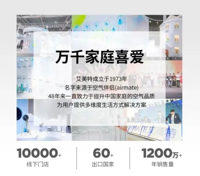 艾美特(Airmate,译为空气伴侣)于1973年在中国台湾成立,至今已经有48年的历史。