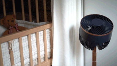 有了艾美特折叠循环扇就很方便,可以加快房间冷热空气循环,宝宝更凉快;而且机身小巧还能无线使用,也让婴儿房更宽敞。