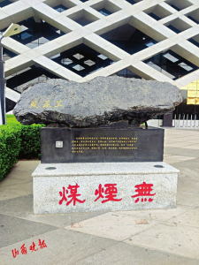 兰花炭属于无烟煤,是一种变质程度最高的煤炭,硬度大、密度高,因燃烧时火焰如兰花而得名,在国内、国际均具有较高的知名度,也曾直接用于英国皇室壁炉取暖。该标本体型巨大,重约3.6吨,产自晋城市原兰花集团大阳煤矿。该标本是在矿山停产十余日从井下专门采集所得,在机械化开采的今天,如此大体量的优质煤炭标本弥足珍贵。