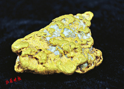 金是一种重要的贵金属,在地壳中含量极低,以单质集合体出现更是十分罕见,俗称“狗头金”。该标本产于大同市灵丘县料堰金矿,重达425克,纯度可达90%以上,是山西省有记载以来发现并保存的最大的自然金,因其外形酷似金蟾而得名“华北金蟾”。
