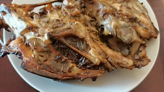 滋滋冒油的烤鸡架一般分为生烤和熟烤两种方式。熟烤是将鸡架烫至半熟,再放上烤架进行烤制。而生烤,则是将腌制过的生鸡架,直接放在炭火上烤熟。烤好的鸡架刷辣酱再撒上孜然辣椒面和芝麻,“绝了,就是这个味!”