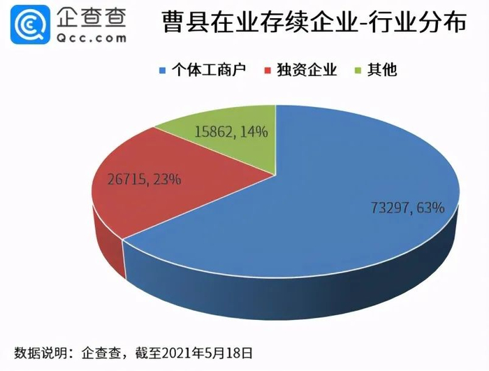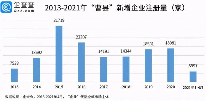 企查查数据显示,截至当前,曹县在业/存续的企业共有11.59万家。据曹县官网信息显示,如今曹县总人口175万,这就意味着曹县15个人中就有一个当老板。