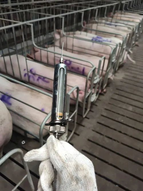 骑猪是在配怀舍工作的必备技能,李迪要模拟公猪的动作对母猪进行骑跨。确定母猪发情后,他把从公猪站拿来的袋装公猪精液输送到母猪生殖道内,就完成了人工授精。