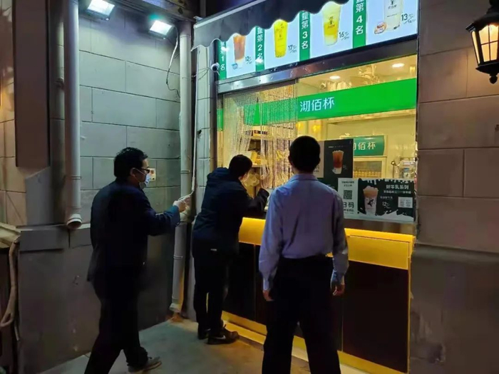记者跟随和平区市场监管局执法人员,对南京路、滨江道等繁华商业街区的20余家饮品店进行“回头看”检查。该局执法人员介绍说:“14日看到有媒体报道蜜雪冰城的事情后,为更好保障广大消费者食品安全,我们连夜就对辖区内的相关品牌饮品店进行了突击检查。同时,提示经营者一定要严格落实食品安全主体责任。检查过程中,也发现个别饮品店存在一些欠规范的地方,我们都及时对其进行了现场指导。今天的‘回头看’检查,也主要是看经营者是否将食品安全的每一个细节要求都真正落实到位。”
