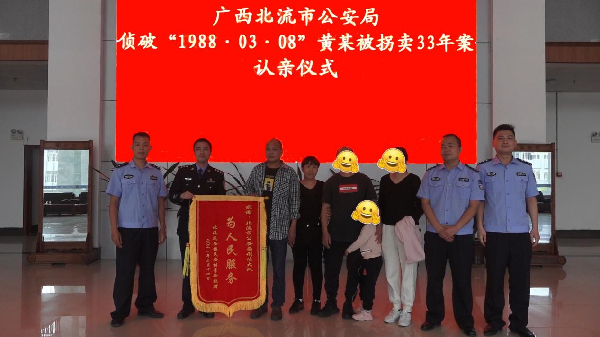 据了解,2021年1月,广西公安厅对拐卖儿童案件进行挂牌督办,由刑侦总队组织开展“团圆”行动刑事技术比对集中会战,竭力让离散家庭早日团聚。截至目前,广西公安机关共比中找回失踪被拐儿童32名,组织认亲活动19场次,其中比中找回的玉林籍陈某(原生父母姓黄)失踪时间长达33年,广西玉林北流市公安局为其组织开展认亲仪式。广西壮族自治区公安厅刑事侦查总队副总队长唐志君表示,请全社会积极提供疑似失踪被拐儿童线索,请涉嫌拐卖、收买儿童的犯罪嫌疑人投案自首,争取宽大处理。