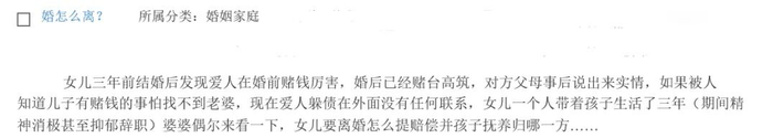 根据你的描述,女儿独自带孩子生活三年,孩子至少已满三岁,依据《民法典》第一千零八十四条规定,已满两周岁的子女,父母双方对抚养问题协议不成的,由人民法院根据双方的具体情况,按照最有利于未成年子女的原则判决。你女儿可以提供平时和孩子一起生活、有能力独自抚养孩子等相关证据依法主张孩子的抚养权。且依据《民法典》第一千零八十七条、第一千零九十一条规定,因男方有赌博的恶习导致离婚的,女方作为无过错方有权请求损害赔偿。你女儿可以提供男方赌博的证据、以及因为男方隐瞒行为造成女方精神伤害的相关证据,依据上述法律规定对于夫妻共同财产申请多分,同时要求男方对其进行相应赔偿。