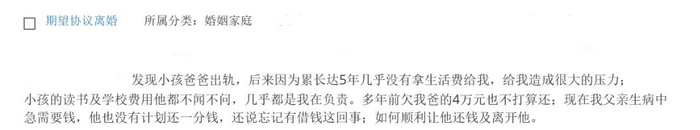我发现小孩爸爸出轨,且他长达5年几乎没有拿生活费给我,对我造成很大的压力。小孩的读书及学校费用他也不闻不问,几乎都是我在负责。他多年前欠我父亲的4万元也没还,现在我父亲生病急需用钱,他仍然没有计划还一分钱,还说忘记有借钱这回事。我该如何顺利让他还钱并离婚?