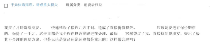 我买了月饼寄给朋友,快递延误了接近九天才到,造成了直接价值损失。按照相关法律规定应该是要进行保价赔偿的,保价了一千元。这件事都是我全程在投诉、跟进和处理,然而快递公司最终居然绕过了我,直接找到我朋友,提出了极其不合理的理赔方案。但是货品和运费都是我出的!这样做合理吗?