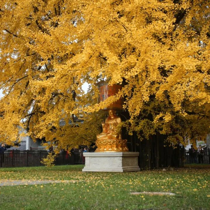这株银杏树,生长于白家坪村鹿苑寺文杏馆遗址前。王维在辋川置有别业,自亲手种植这棵银杏树后,遂将别业命名为“文杏馆”。银杏树寿命长,此树又是雌株,至今树冠高大,苍老遒劲,春天苍劲葱郁,遇夏碧叶成荫,逢秋果实累累,四季端庄挺拔。