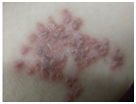 患者男,27岁,腿部湿疹反复发作,病史两年。