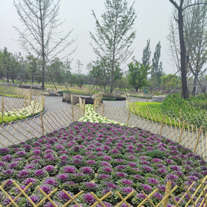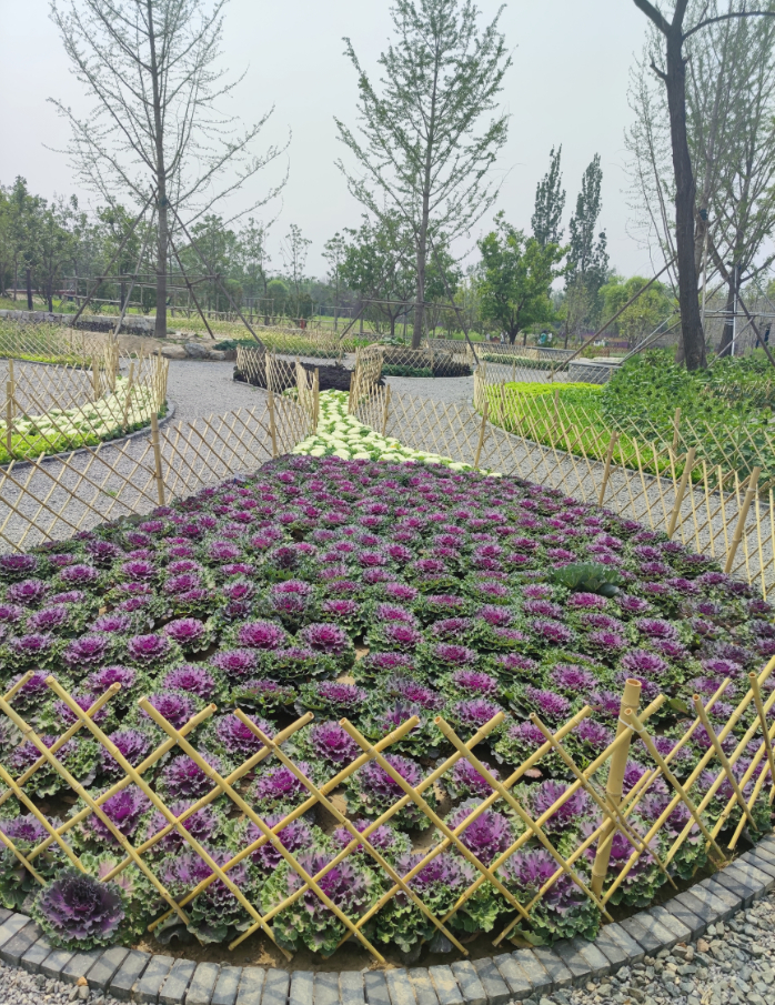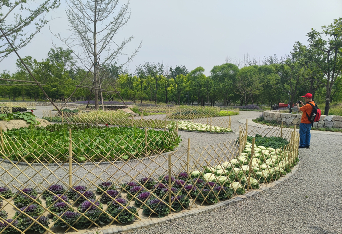 为了保证景观效果,防止个别游客私挖乱采,公园还用竹竿在每垅菜的四周搭了篱笆墙,营造出“篱落疏疏一径深”的意境。