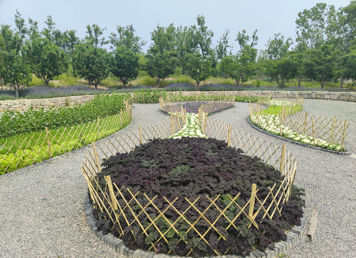 设计团队选用的,都是应时应景的蔬菜,还会定期“换茬”。春季昼夜温差大,种植的多是耐冷凉的叶菜,如油菜、生菜、冬寒菜;到了夏季,气温升高,就会种植番茄、茄子、彩椒等观赏类瓜果;天气转凉,再轮回耐凉型蔬菜,游客在不同时节来赏景,总会有不一样的收获。