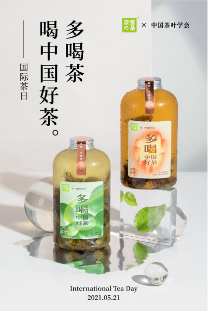 奈雪的茶还以国际茶日为契机,积极加入中国茶叶学会发起的“2021年国际茶日暨第十三届全民饮茶活动”,联合中国茶叶学会展开茶文化的传承合作。奈雪的茶通过线上线下多种方式为用户普及了众多茶叶小知识的同时,也通过在冷泡茶的瓶贴上加入茶相关的古诗文,以新颖、有趣的形式让更多人了解茶文化。