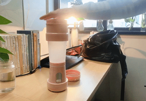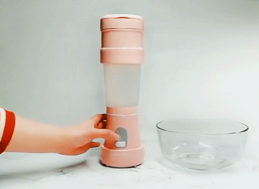 第二步:盖上杯盖,双击开关按钮,等待榨汁。