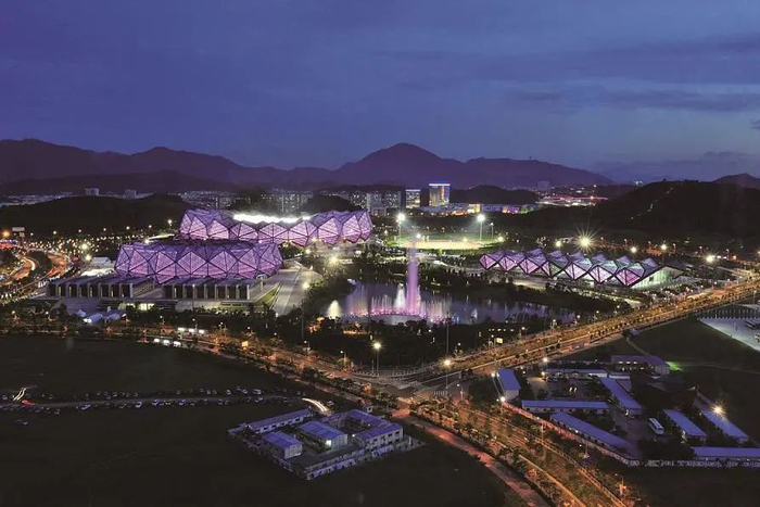 深圳大运中心是深圳龙岗的知名地标建筑之一,也是深圳首个集赛事、演艺、会展、商业、文娱五大功能于一体的公众文体公园,体育场内可容纳 60334 名观众。深圳大运中心将成为继韩国首尔世界杯竞技场、洛杉矶斯台普斯中心、韩国仁川文鹤竞技场、法国巴黎雅高酒店体育馆、上汽浦东足球场之后的第六个英雄联盟全球总决赛场地。