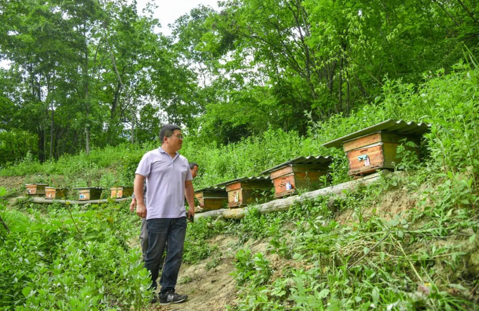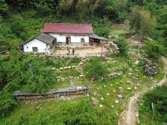 前往养蜂基地,根本就没有路,必须一路攀爬。他在那里建了两间可以住人的小木屋。春夏两季负责养蜂的工人,每天要检查蜂桶和蜂箱的情况,协助蜜蜂完成分蜂。如果发现蜜蜂的天敌胡蜂,还要想办法驱赶。
