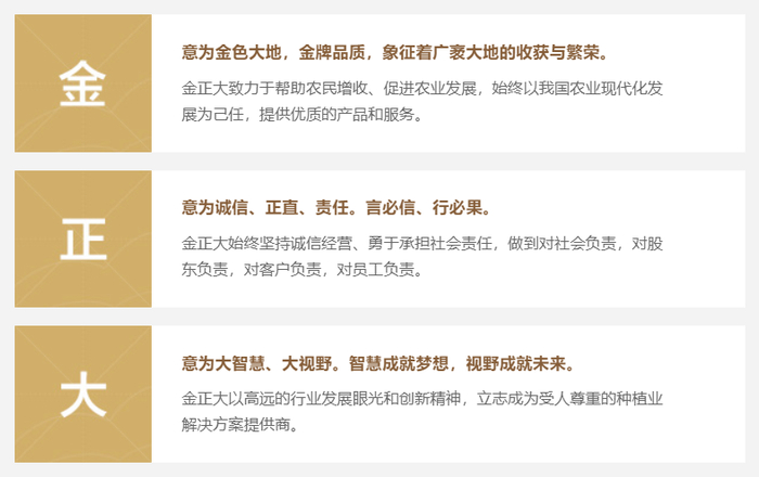 公司官网在企业文化中显示,“金正大”中的“正”字,意为诚信、正直、责任。金正大始终坚持诚信经营、勇于承担社会责任,做到对社会负责,对股东负责,对客户负责,对员工负责。
