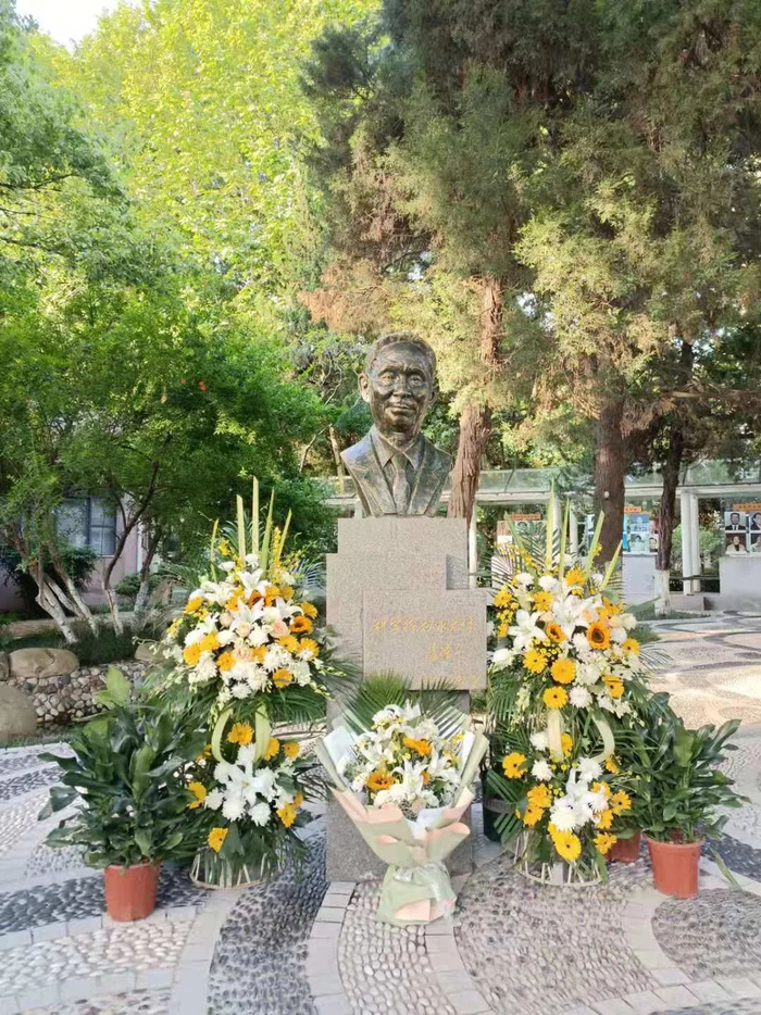 听闻袁隆平逝世,22日下午,南师附中的老师们第一时间在袁老的雕像前敬献花篮。